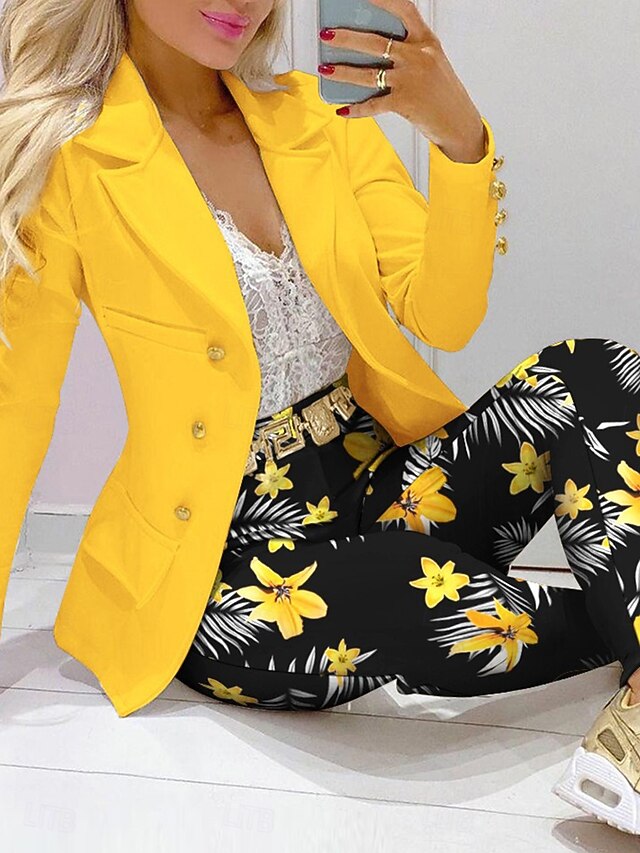 Why Choose Women's Elegant Streetwear Daily Blazer Skirt Long Sleeve Shirt Collar Graphic Patchwork Casual Yellow Spring & Fall Regular Fit?