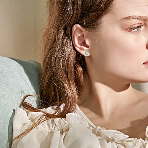 Turquoise Stud Earrings,S925 Sterling Silver Round/Oval Vintage Braids Circle Turquoise Earrings,Blue Gemstone Bohemian Ethnic Tribal Jewelry for Women Graduation 5