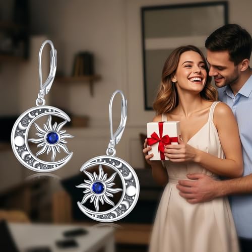 Birthstone Earrings 925 Sterling Silver Birthstone Dangle Earrings Sun Moon Jewelry Gifts for Women 7