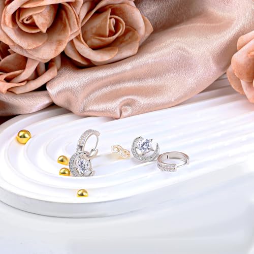 Sterling Silver Earrings for Women Dangle Hoop Charms Hypoallergenic Fashion Jewelry Star Moon Birthday Gift 3