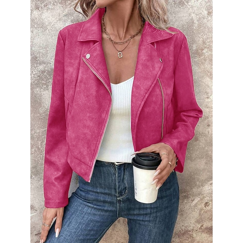 $38.99 - Women's Casual Jacket Comfortable Breathable Zipper Casual Plain Vacation Street Casual Daily Wear Zipper Short Turndown Regular Fit Long Sleeve Outerwear Pink Fuchsia Brown Spring Fall 2025. Shop for cheap Casual Jackets online? Buy at lightinthebox.com on sale today!