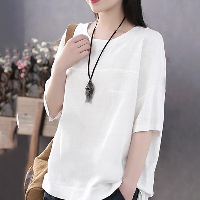 popular ! Women's Linen-Inspired Shirts T Shirt Plain Basic Short Sleeve Round Neck Regular Tops Daily Weekend White Blue Orange Green