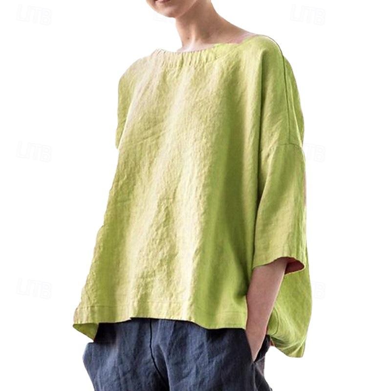 $26.99 - Women's Shirt Linen-Inspired Shirts Blouse Plain Fashion Round Neck Street Daily Sexy Yellow Pink Blue Purple Green Summer 2025. Shop for cheap Shirts online? Buy at lightinthebox.com on sale today!