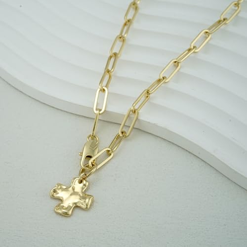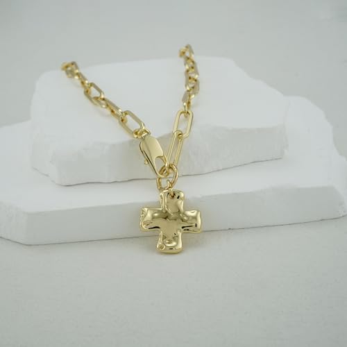 Chunky Cross Necklace for Women Trendy 14K Gold Silver Plated Statement Big Cross Pendant Paperclip Chain Charm Necklaces Religious Faith Easter Basket Stuffers Baptism Costume Jewelry Gift 1