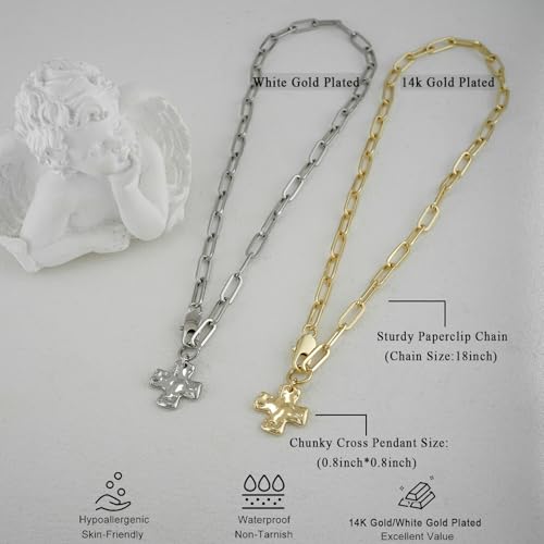 More information about Chunky Cross Necklace for Women Trendy 14K Gold Silver Plated Statement Big Cross Pendant Paperclip Chain Charm Necklaces Religious Faith Easter Basket Stuffers Baptism Costume Jewelry Gift