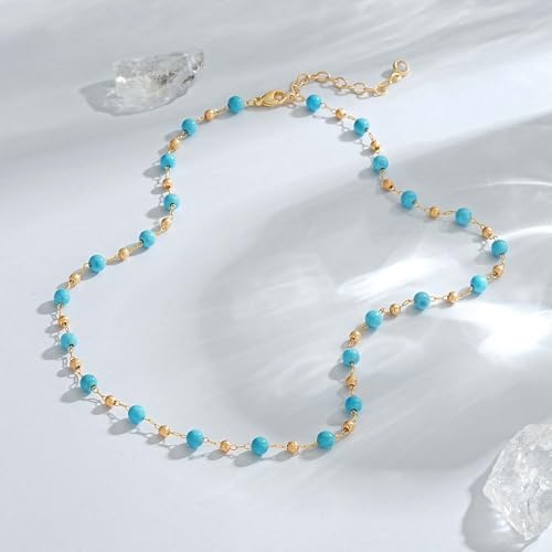 • Turquoise Necklace: Crafted with genuine turquoise beads and 14K gold-plated brass core, this tough turquoise necklaces for women is heat-bonded for enhanced durability. Hypoallergenic design maintains lustrous shine through everyday use.