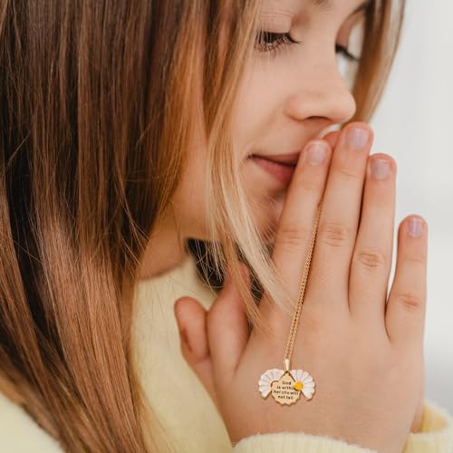 PANTIDE Christian Daisy Locket Necklace for Women - God Is Within Her She Will Not Fail Engraved Faith Religious Necklace Inspirational Stainless Steel Necklace Jewelry Birthday Gift