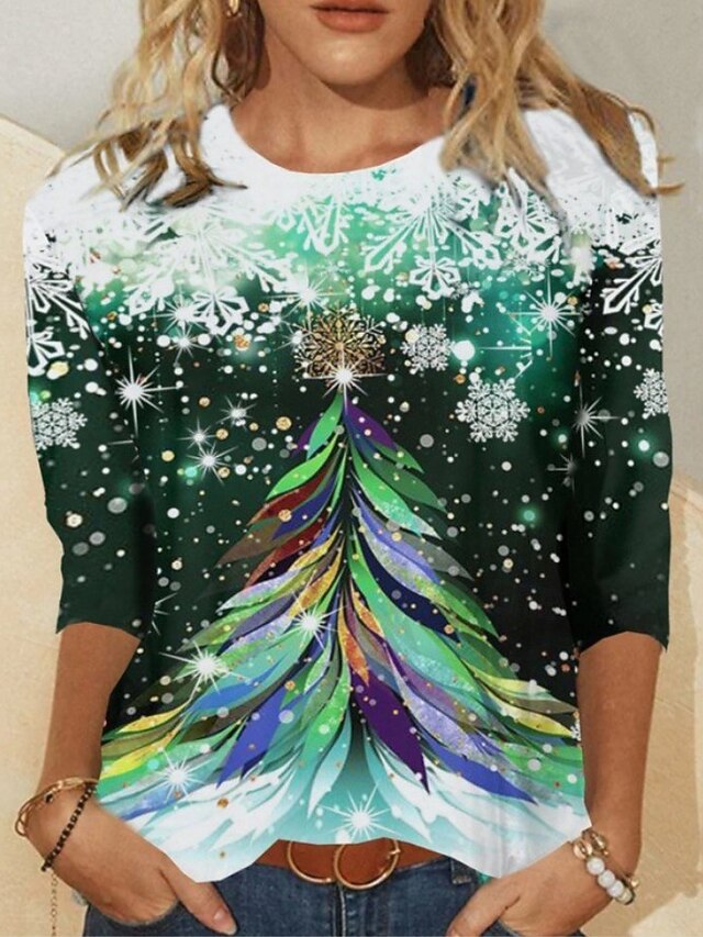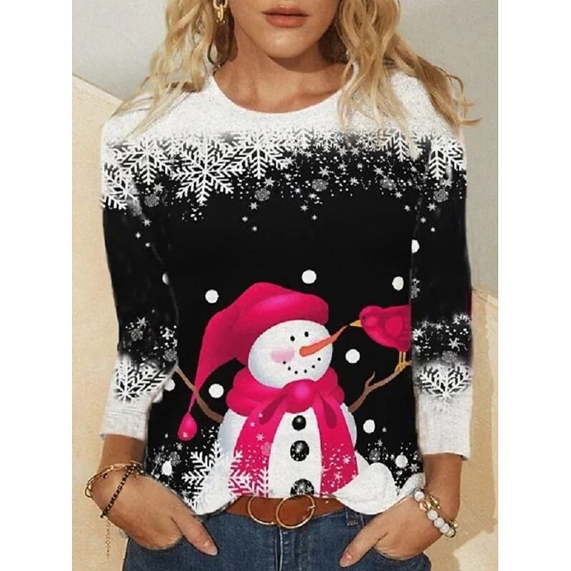More information about Christmas Women's T Shirt Graphic Snowman Christmas Tree Vintage Fashion sleek Long Sleeve Crew Neck Round Neck Regular Tops Daily Weekend Print Black+White+Red Black Blue Dark Green Dusty Blue