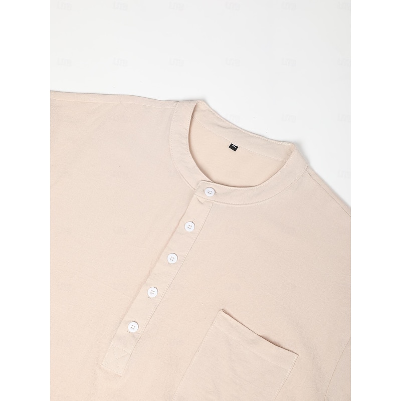 More information about Men's Shirt Linen Shirt Band Collar Shirt Summer Shirt Beach Wear Solid Color Street Hawaiian Light Blue Wine Red Black White Long Sleeve Collar Summer Spring Clothing Apparel