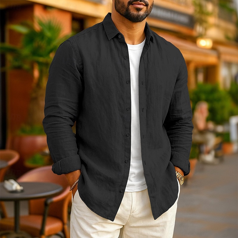 This Men's Linen Shirt Summer Shirt Beach Wear Casual Shirt Button Up Shirt Plain Vacation Casual Black White Pink Navy Blue Long Sleeve Lapel N / A Clothing Apparel combines elegant design with practical functionality. Every detail has been carefully considered to ensure you get the best possible experience. The outstanding construction means this product will serve you well for years to come.