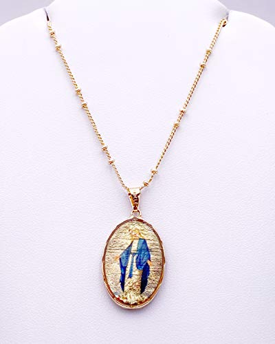More information about LESLIE BOULES Virgen La Milagrosa Pendant Necklace 18K Gold Plated Chain 18 Inches Length