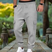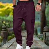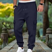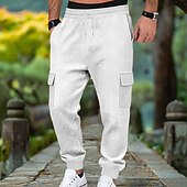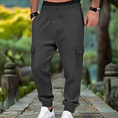 More information about Men's Waffle Cargo Sweatpants Joggers Trousers Casual Pants Drawstring Multi Pocket Plain Comfort Full Length Outdoor Home Party Vacation Ethnic Style Black White Stretchy