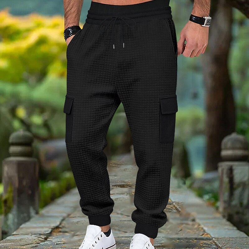 popular ! Men's Waffle Cargo Sweatpants Joggers Trousers Casual Pants Drawstring Multi Pocket Plain Comfort Full Length Outdoor Home Party Vacation Ethnic Style Black White Stretchy