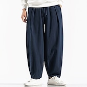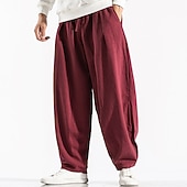 Highlights Title: Men's Linen Cotton Summer Trousers with Drawstring and Elastic Waist [Fabric:] Crafted from a premium blend of linen and cotton, these men's trousers offer a lightweight and breathable experience, making them perfect for warmer months. The fabric ensures comfort and ease of movement throughout your day. [Fit:] Designed with a regular fit, these trousers provide a relaxed silhouette that allows for ample room through the legs. The elastic waistband, complemented by a functional drawstring, ensures a customizable and secure fit for various body types. [Design Highlights:] Featuring practical pockets and a smart mid-waist design, these trousers combine functionality with style. The drop crotch design adds a modern twist, while the plain, clean lines keep the appearance stylishly understated. [Occasions:] Ideal for daily wear, casual outings, or outdoor activities, these trousers are versatile enough to pair with your favorite casual tops and sneakers. Whether you're lounging or exploring on weekends, they provide comfort and effortless style. [Size Range:] Available in a broad range of sizes from M to 5XL and in colors Green, Black, Red, and Dark Blue, there's a perfect fit for everyone. Enjoy your summer outings with these sophisticated and comfortable trousers. Perfect for everyday use. supreme materials and excellent craftsmanship ensure long-lasting durability.