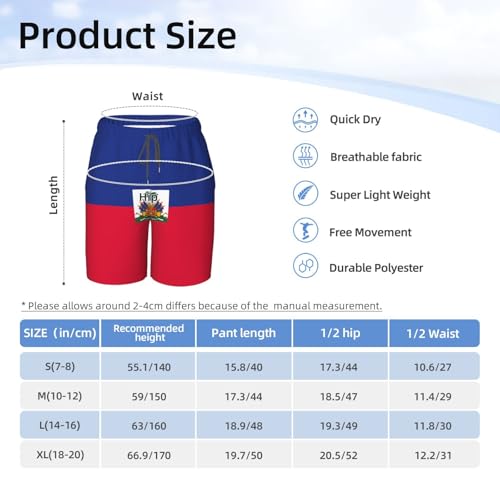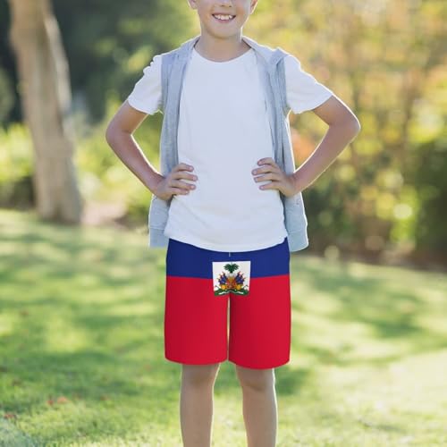 popular ! Haitian Flag Youth Beach Pants, tender and Breathable, with Drawstring Waist, Suitable for Sports and Leisure.