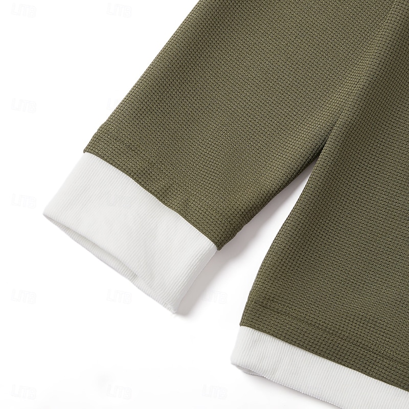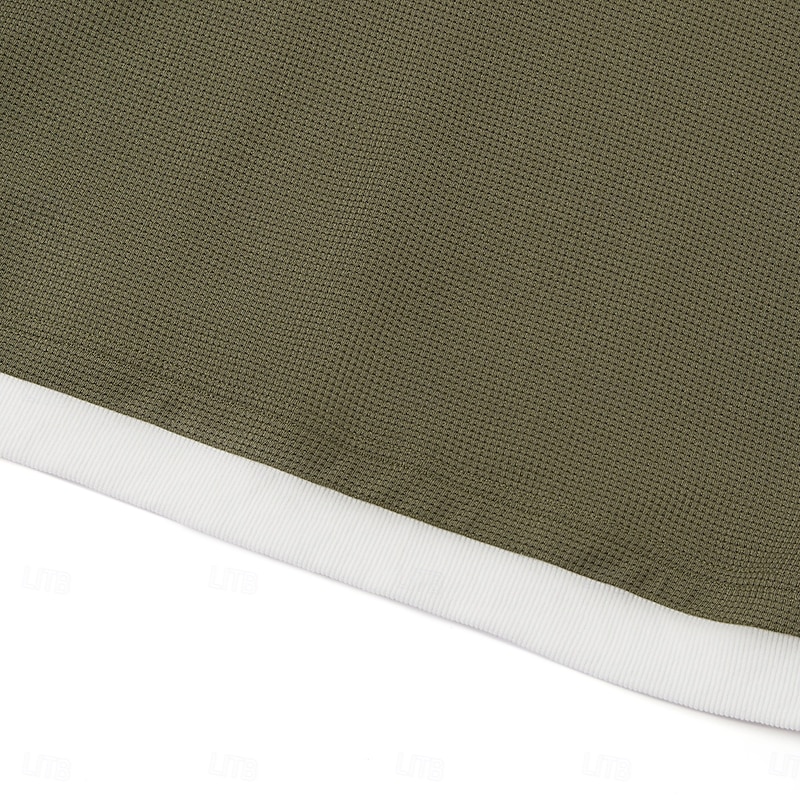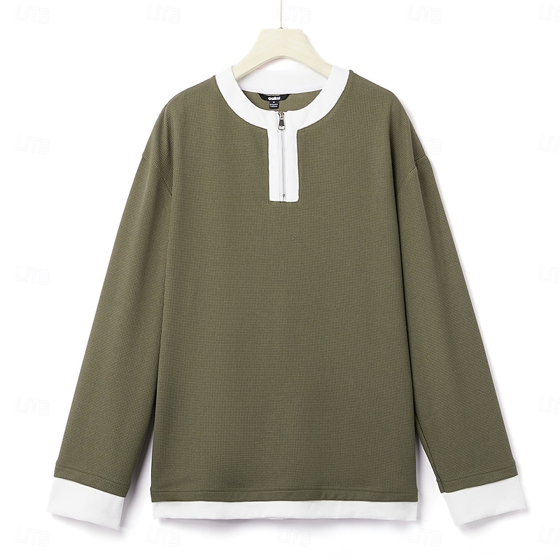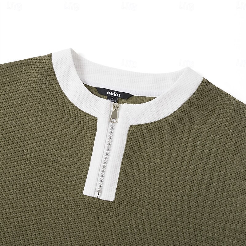 More information about Men's Waffle T-shirt Quarter Zip Tee Tee Top Long Sleeve Shirt Long Sleeve Crewneck Spring & Fall Color Block Fashion Designer Basic Zipper Fake two piece Vacation Street Going out Dark Brown Army