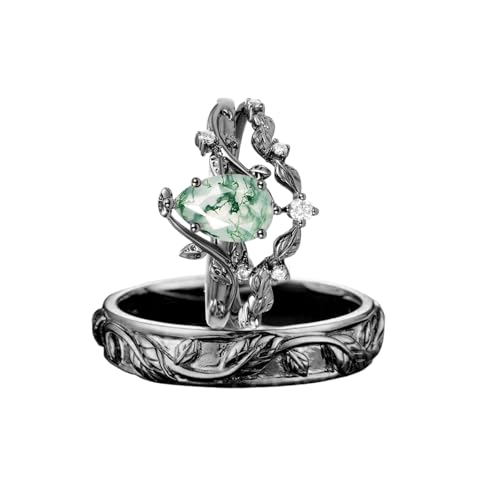 • 【Moss Agate Couple Ring Set】: This couple engagement ring set uses a sparkling moss agate as the main stone in its design, making this couple ring set more refined and outstanding. In addition, this moss agate couple ring set allows every customer to choose the incredibly suitable ring according to their own ideas. It is a outstanding gift for your wife and your loved ones