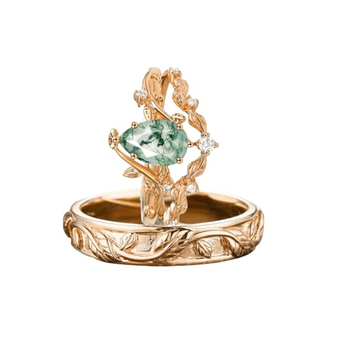 • 【Best Giftl】: This 10Kt/14Kt/18Kt real gold moss agate couple matching wedding ring set comes with a stunning jewelry gift box. It is a faultless gift for best friends, wife, mom, grandmas, ladies, sisters, aunts, best friends, bridesmaids, lovers. Suitable for any occasion, such as Mother's Day, Anniversary, Birthday, Valentine's Day, Christmas, Engagement, Commitment, Graduation