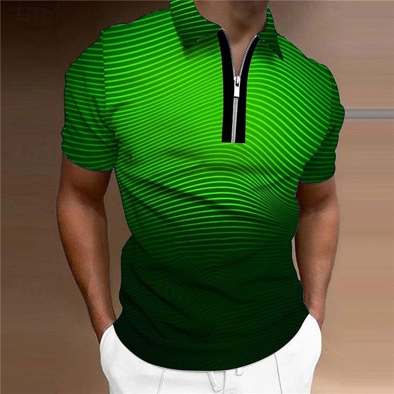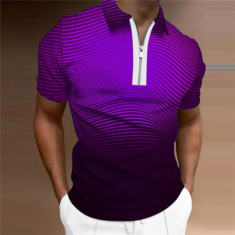 popular ! Men's Striped Zip Polo Shirts Golf Shirt Short Sleeve Polo Shirts Collared Shirts Business Casual Vacation Wear Formal Wear Festival Wear 3D Print Quarter Zip Polo Red Blue Purple