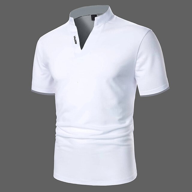 popular ! Men's Polo Shirt Golf Shirt Casual Holiday Stand Collar V Neck Short Sleeve Fashion Basic Plain traditional Summer Regular Fit Fire Red Black White Green Gray Polo Shirt