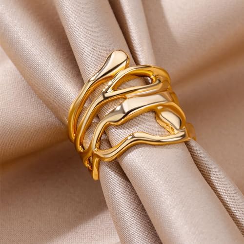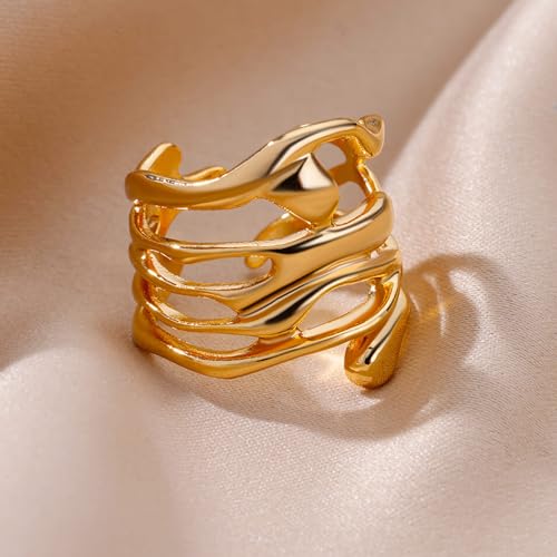 Chunky Band Rings for Women Adjustable Open Gold Silver Rings Thick Gold Statement Rings straightforward Stackable Rings for Women Wedding Birthday Jewelry Gifts