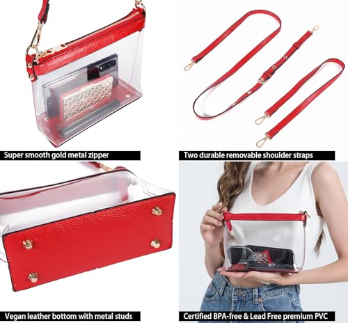 Y&R Direct 3-IN-1 Clear Zipper Crossbody Bag with Vegan Leather Trim Clear Purse for Stadium Festival Concert Gameday Gifts 4