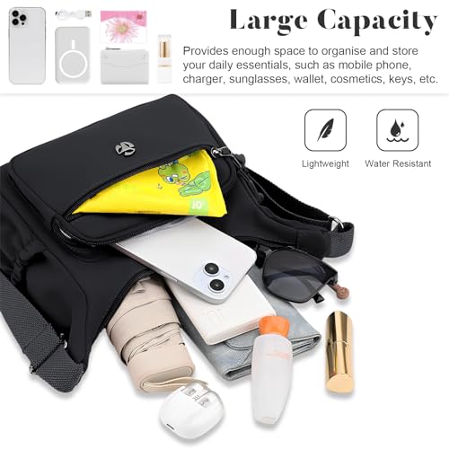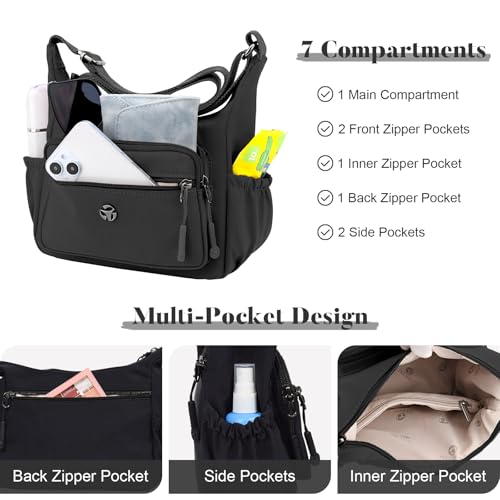 Nylon Crossbody Bag for Women Multi-Pocket Shoulder Handbag Travel Satchel Purse with Adjustable Strap