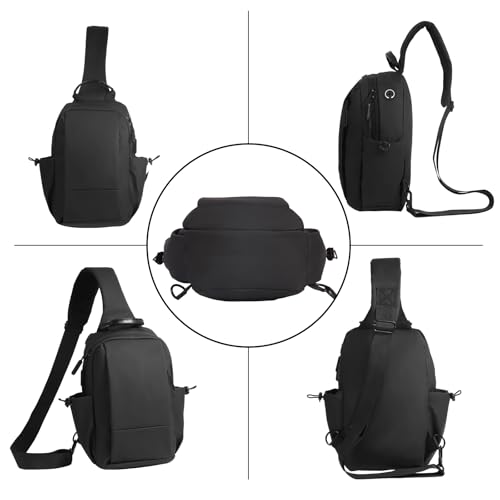 • 【elementary and lovely】: The mini sling bag for men has 1 main zipper pocket, 1 front zipper pocket, 2 compartment pockets and 2 side pockets, it is suitable for storing mobile phones, keys, headphones, tissues and cash. Fashionable headphone hole, so you can listen to music and make calls at any time outside.