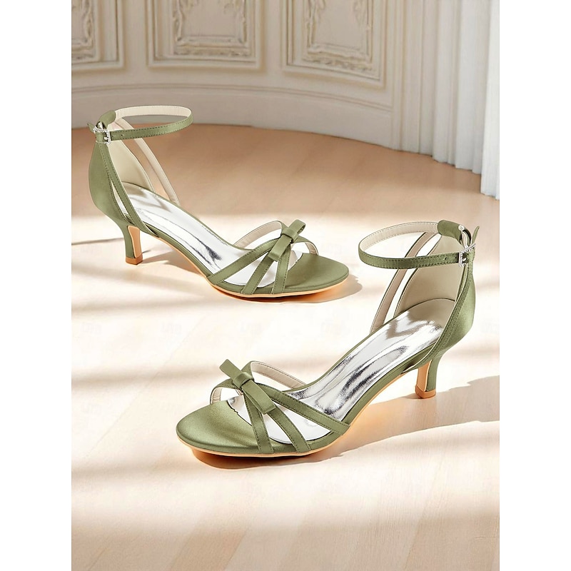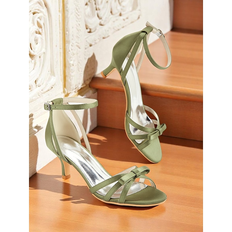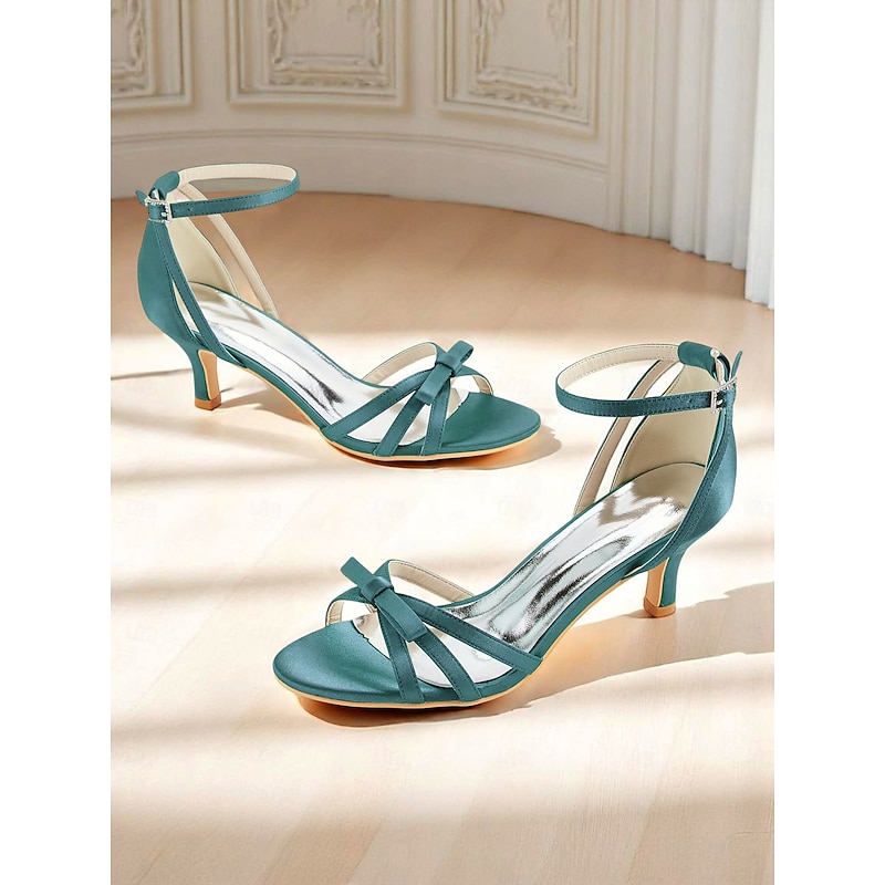 Why Choose Women's 1950s Vintage Satin Green Strappy Kitten Heel Sandals with Bow Detail – Elegant Evening Shoes for Wedding Guests, Cocktail Parties, and Formal Events?
