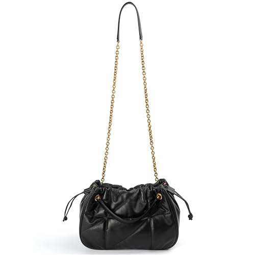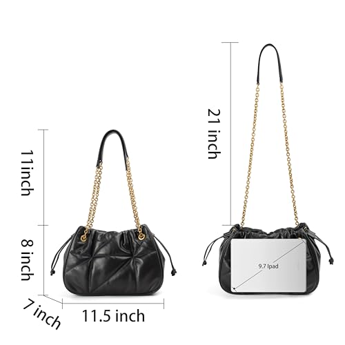 DORIS&JACKY Leather Quilted Tote Bag for Women Designer Lambskin Puffy Shoulder Purse With Metal Chain Strap