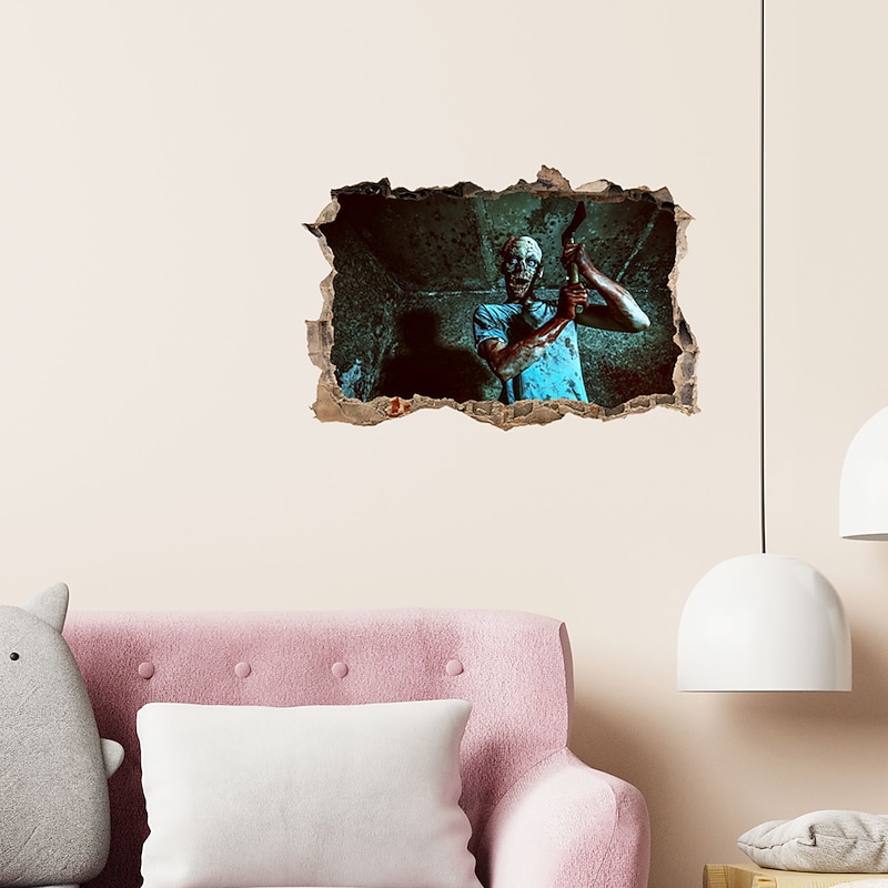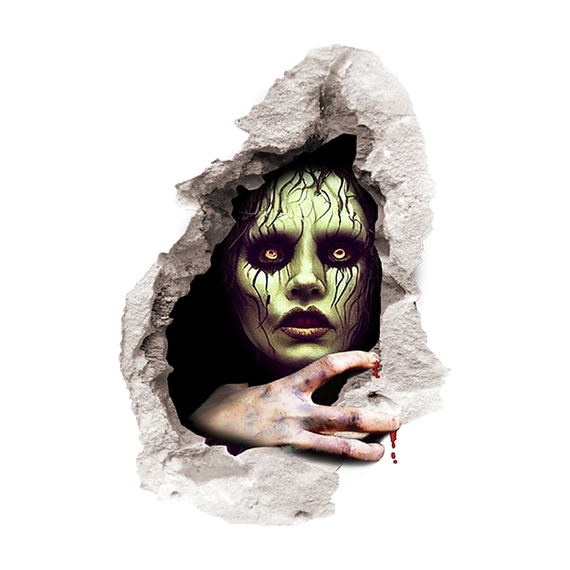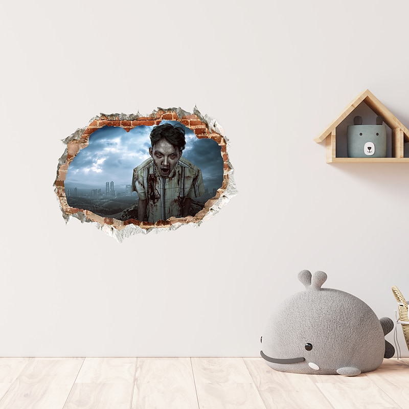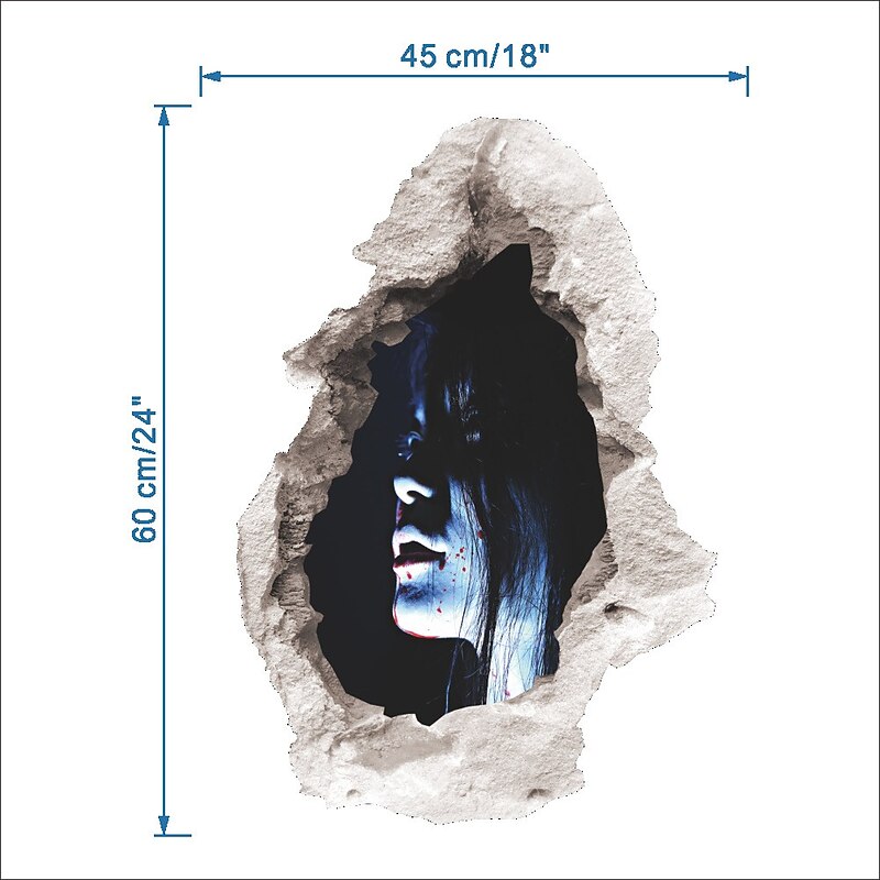 Why Choose 3D Halloween Terror Lifelike Broken Wall Female ghost and male ghost Wall Stickers Removable Home Decoration Living Room Entrance Sofa Background Bedroom Study Mall Specific Scene Wall Stickers?