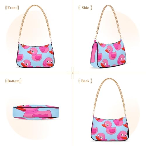 Cute Pink Cartoon Ducks Blue Clutch Handbags Womens Lady One Shoulder Bag Zipper Hobo Evening Purse with Chain Strap 1