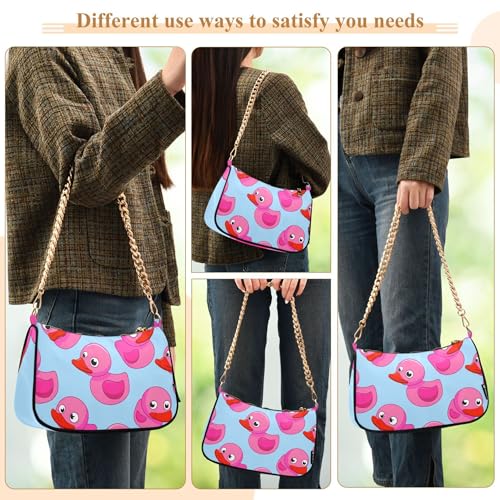 Cute Pink Cartoon Ducks Blue Clutch Handbags Womens Lady One Shoulder Bag Zipper Hobo Evening Purse with Chain Strap 4