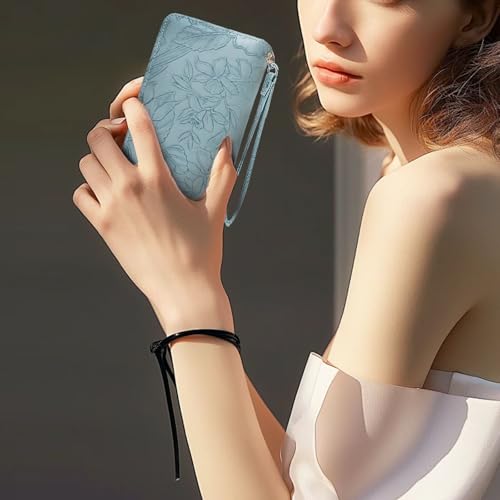 Wallet Women, Large Capacity Double Zip Clutch Wallets for Women PU Leather Credit Card Holder with Wrist Strap