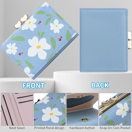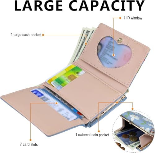 Real Leather Coin Purse for Women Cut Small Wallet with Coin Pocket and Card Holder ID Window for Girls (Blue)