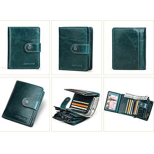 • DIMENSION -- 9.5 x 3 x12 cm , genuine leather coin purse for ladies has a compact design with 10 card slots,2 banknote pocket,1 zipper coin pocket,1 ID photo window and so on.