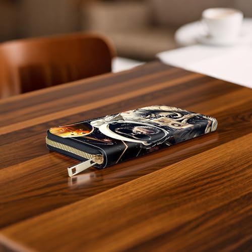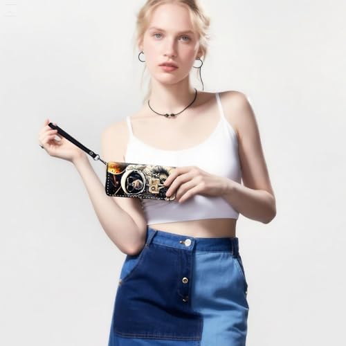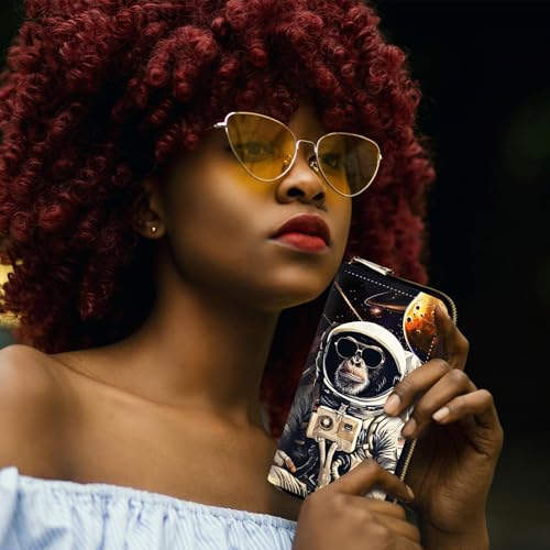 RFID-Blocking Zip Around Wallets for Women with Detachable Wrist Strap,Large Capacity Phone Holder with Card Organizer & Coin Pocket,Gorilla Astronaut