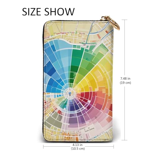 More information about Women's Long Cash Wallet, PU Leather Elegant Clutch Change Purses with Zipper, Travel, Gifts (Color map Print)