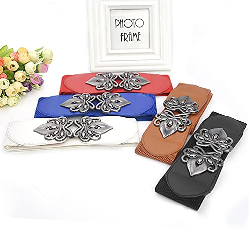Women Vintage Wide Waist Belt Elastic Retro Cinch Belt Stretchy Belt with Metal Buckle 5