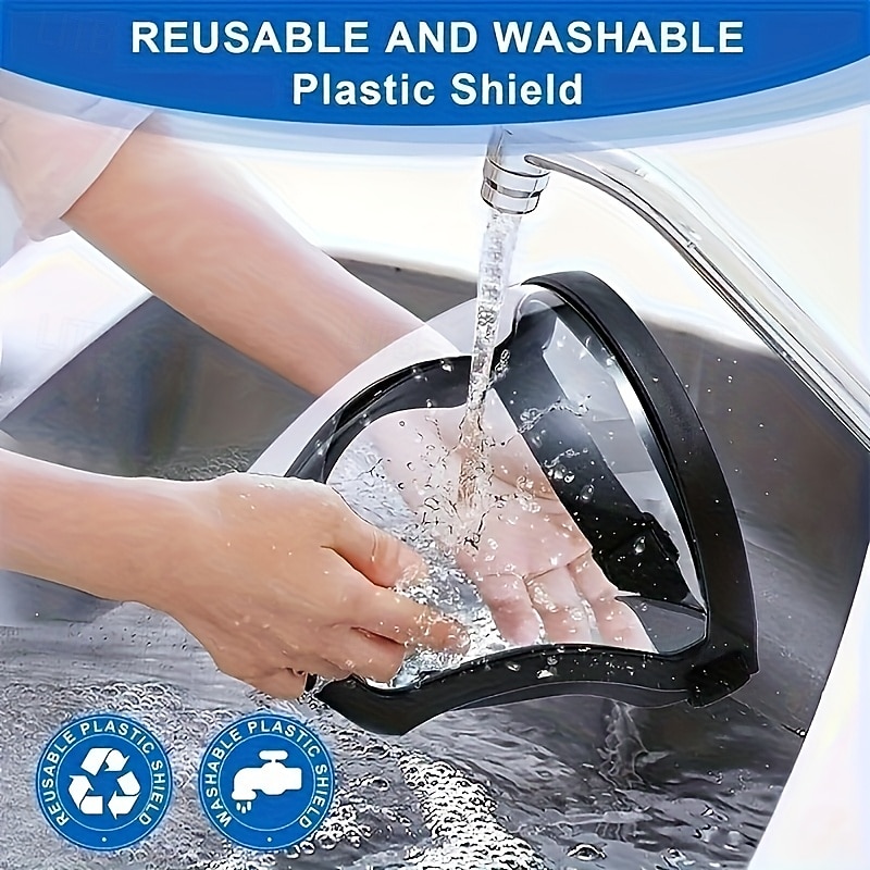 Highlights Superior Protection & Comfort: Crafted from high-quality PC and silicone, this face shield is impact-resistant, anti-fog, anti-scratch, and offers full-face coverage. The silicone sealing design provides a snug, soft fit for all-day wear. Adjustable & Reusable Design: The adjustable elastic headband ensures a secure fit for adults and teenagers of all sizes. Washable and reusable, making it an eco-friendly choice for everyday protection. Breathable & Ventilated: Equipped with a removable breathing filter plug, the shield ensures easy airflow, preventing stuffiness even during extended use. Customize your comfort by replacing the filter cloth as needed. Anti-Fog & Clear Visibility: The HD transparent visor is coated to prevent fogging, ensuring clear visibility in any condition. Perfect for work, riding, or everyday use. Versatile Use: Suitable for a wide range of activities, including cycling, cooking, and industrial work. It also doubles as a motorcycle goggle mask, providing wind resistance and UV protection. Durable & Unbreakable: Built to withstand high pressure and falls, this face shield will not deform or tear easily, making it reliable protective gear in various environments. Multi-Purpose Application: Ideal for both men and women, this shield can be used in kitchens, restaurants, workshops, outdoor activities, and as safety gear for riding motorcycles. Perfect for everyday use. excellent materials and excellent craftsmanship ensure long-lasting durability.