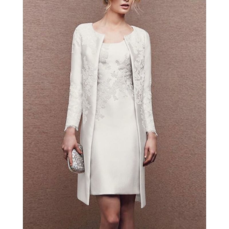 Why Choose Two Piece Sheath Mother of the Bride Dress Wedding Guest Church Elegant Plus Size Scoop Satin Lace Sleeveless Wrap Included Jacket Dresses with Appliques Race Day Dress?