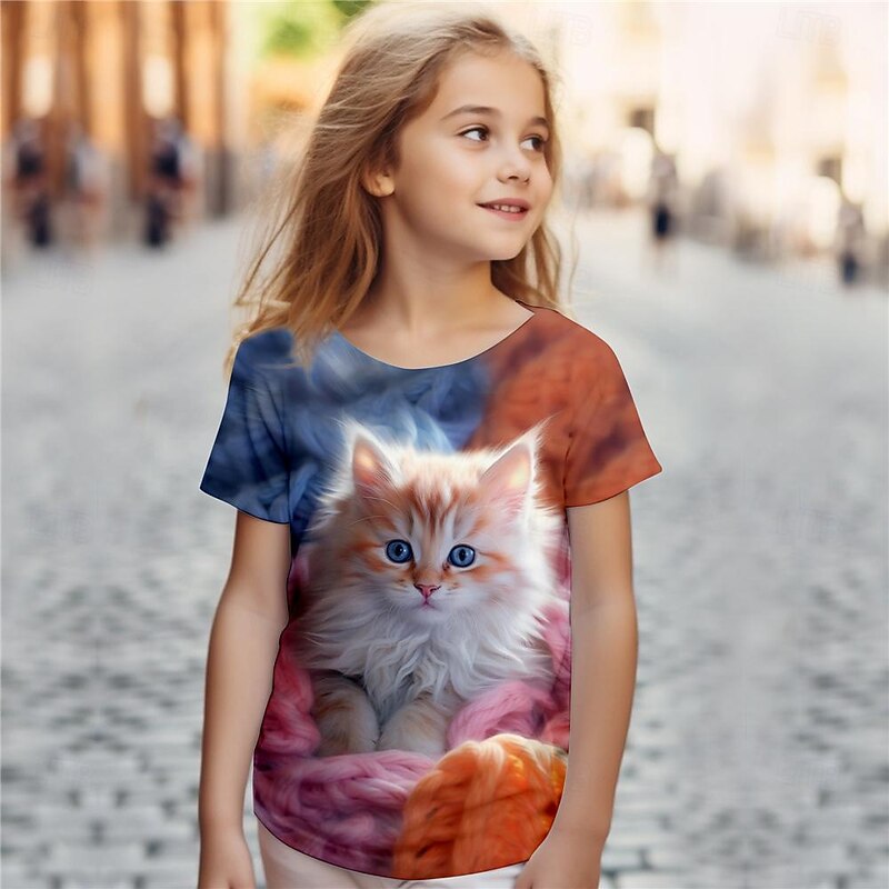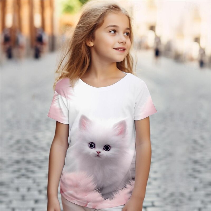 popular ! Girls' 3D Cat Tee Shirts Pink Short Sleeve 3D Print Summer Active Fashion Cute Polyester Kids 3-12 Years Crew Neck Outdoor Casual Daily Regular Fit