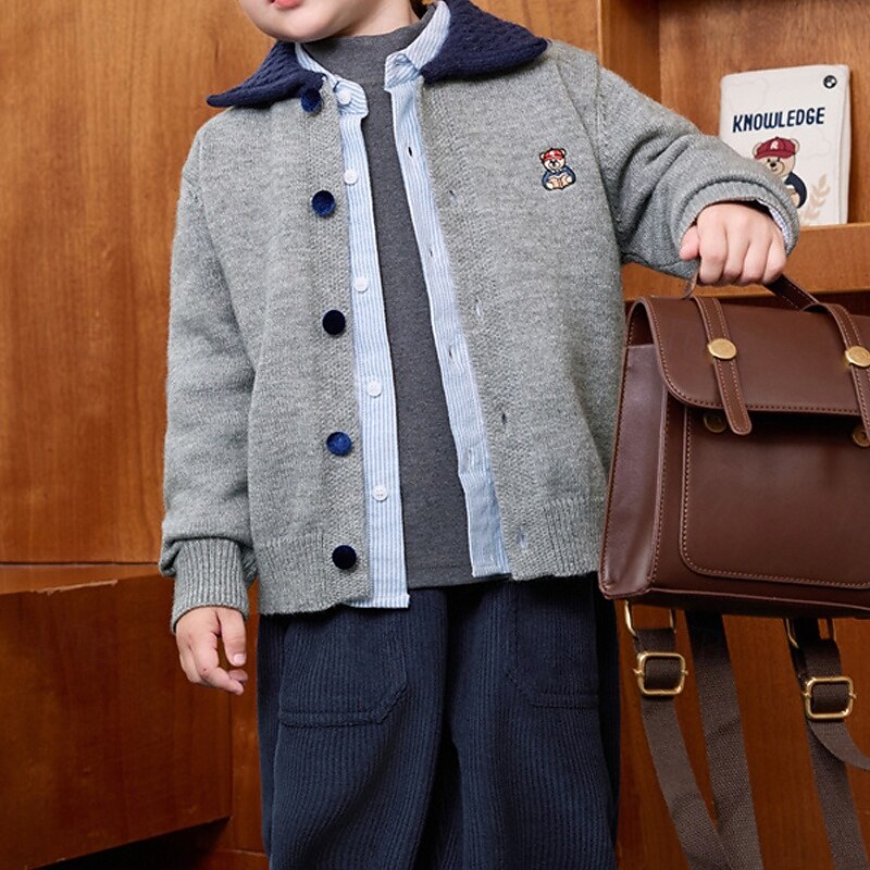 Kids Unisex Baseball Jackets Outerwear Color Block Long Sleeve Comfort Buttons Soft Coat Outdoor Fashion Daily Gray Spring Fall 4 years+ 1