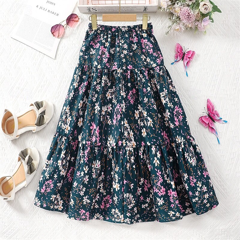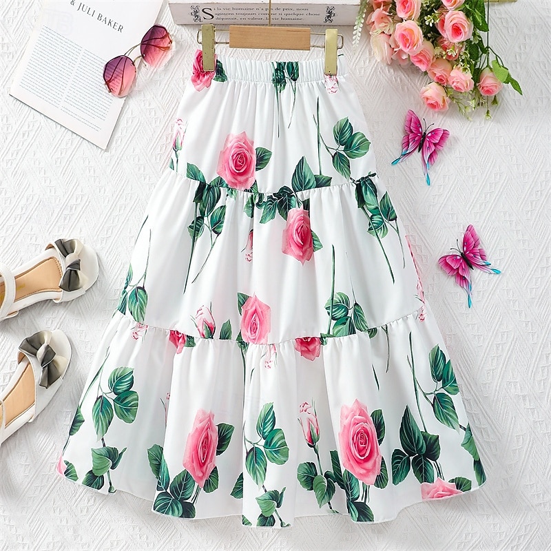 popular ! Kids Girls' Skirt Floral Streetwear Patchwork Performance 4 years+ Summer Black Pink