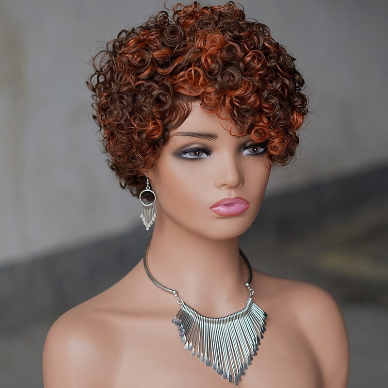 Short curly wigs 100% human hair wigs for black women human hair wig with bangs glueless machine made no lace light and comfortable 5