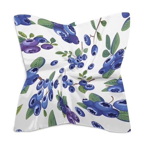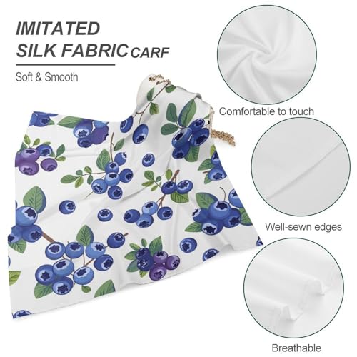 Blueberries with Leaves Women's Silk-Like Fashion Head Scarf Versatile Satin Square Bandana Kerchief 7
