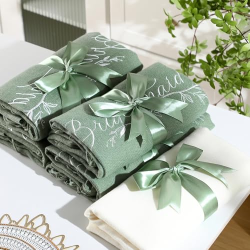 Hercicy 5 Pcs Bridesmaid Gifts Bride Pashmina Shawls and Wraps White Scarf Matcha Green Shawls for Wedding Proposal Bridal Party Accessories