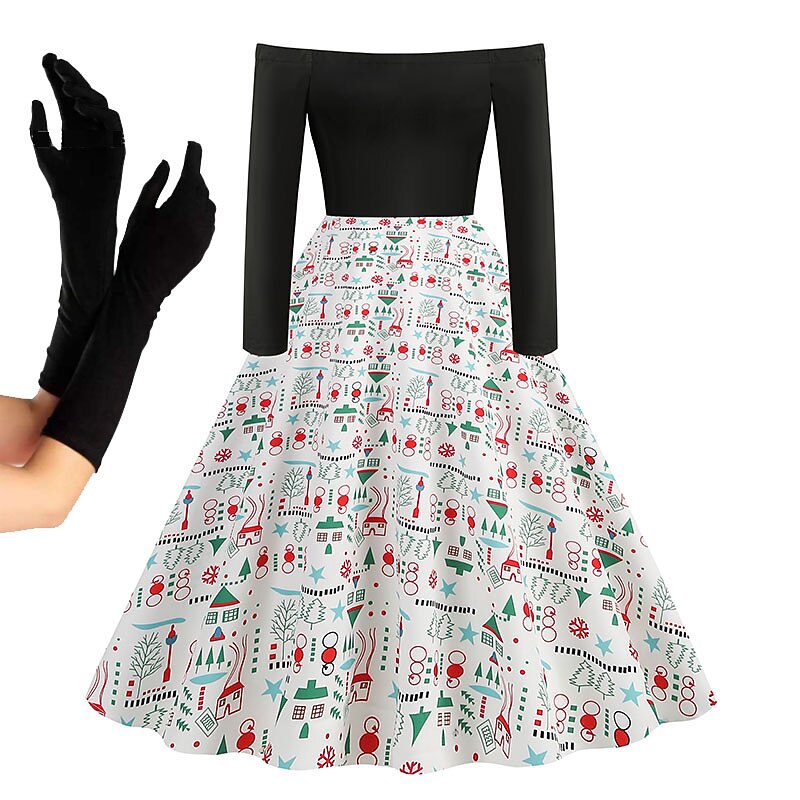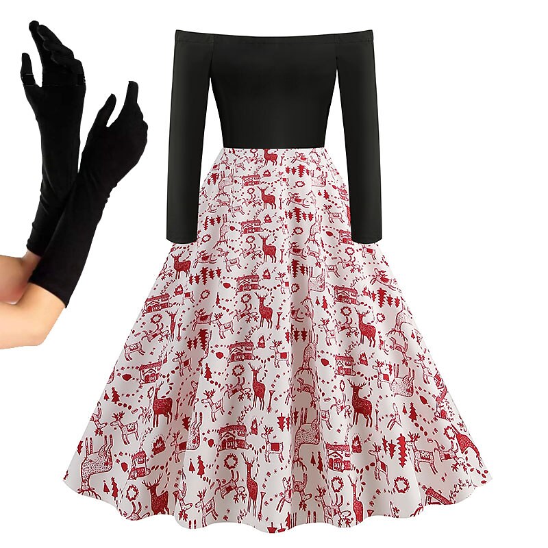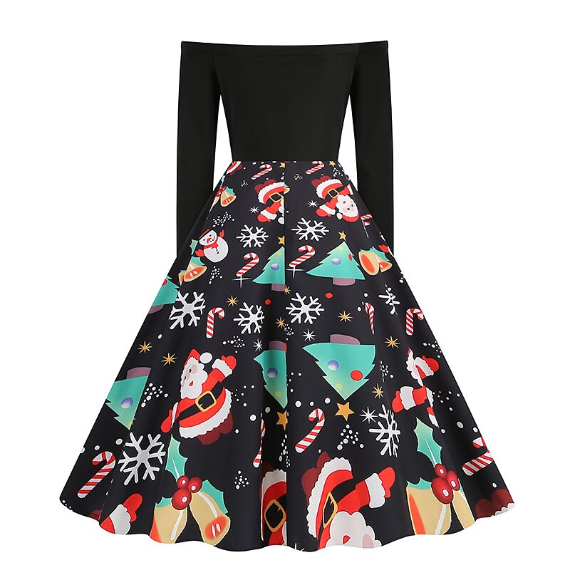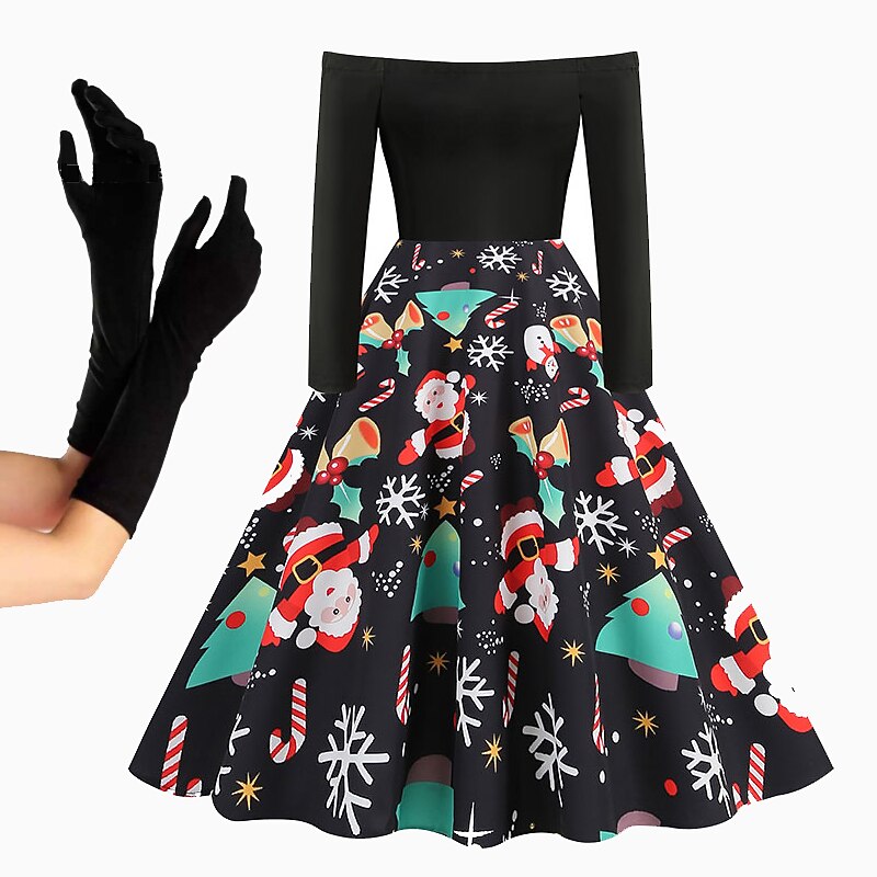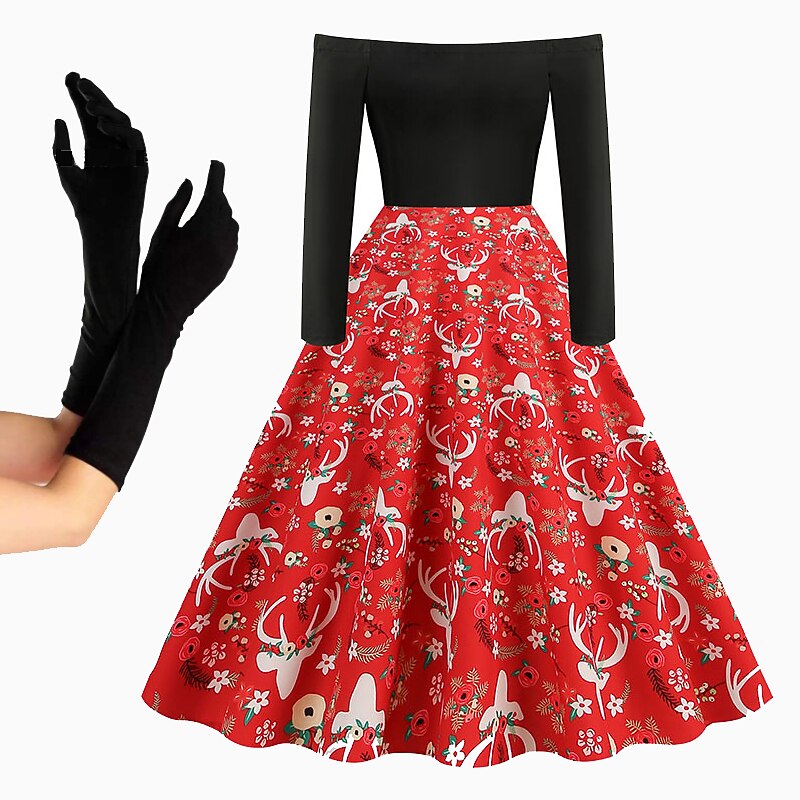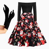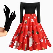 More information about 1950s Christmas flare Midi Knee Length Dress Christmas Dress Prom Dress Santa Suit Off Shoulder Floral Print Christmas Printing Ball Gown Fancy Dress Women's Christmas Masquerade Christmas Christmas
