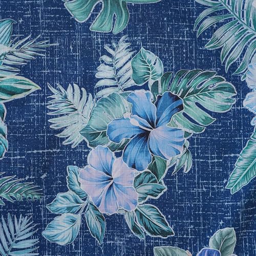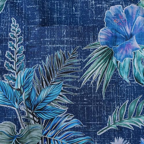 Men's Hawaiian Shirt 100 Cotton Tranquil Blue Blossoms Green Short-Sleeve Aloha Summer Beach Button-Down Shirts