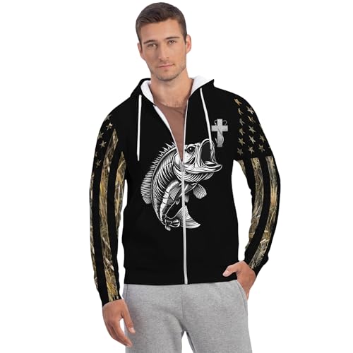 • Outdoor Activities. The lightweight hooded jacket is faultless for outdoor adventures like fishing trips, boating, or casting your line at the lake or river. Whether you're reeling in a big catch, exploring the terrific outdoors, this zipper hoodie is a must-have for anglers. Featuring a fishing-themed design with elements inspired by nature, including largemouth bass, walleye, redfish, catfish, crappie, trout, carp, fishing hook and rod, it’s the ultimate gift for fisher, fly fishing lover